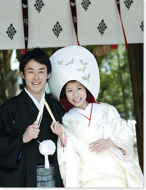 婚儀式次第に略式はなく、参進より丁寧に執り行われる古式ゆかしい厳かな神前結婚式。